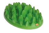 our rehomed expelled guide dog /sniffer dog is a gannet, and ive just bought a fabulous bowl that is like a maze. he has to employ all that intelligence to work out how to get the pieces of food to only of only two exits, so he can eat them. the channels are deep so he finds it harder to just flick them out. it now takes five minutes instead of ten seconds to down his rations.. – i bought it from guide dogs as it raises funds too. love it!