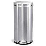 Simplehuman 30 Liter/8 Gallon Stainless Steel Round Kitchen Step Trash Can, Brushed Stainless Steel.*(paid link) This sleek and slim round trash can comes in 30 and 35 gallon sizes.