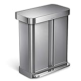 simplehuman 58 Liter / 15.3 Gallon Stainless Steel Dual Compartment Rectangular Kitchen Step Trash Can Recycler with Liner Pocket, Brushed Stainless Steel.*(paid link) This sturdy, durable, and multi-purpose two-compartment trash can comes in 30, 45, 55, and 58-liter sizes.