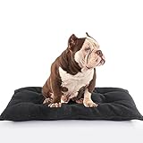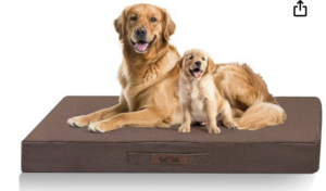 This durable dog mat(paid link)* is stretching the definition of ‘bed’ a little. It’s very thin indeed. But for heavy chewers, that means no fiberfill stuffing to pull out of it and scatter around the room they sleep in. And like a foam sleeping mat when you go camping, it’s warmer and more comfortable than sleeping directly on the hard base of a crate. Since they’re absorbent and washable, these pads are a smart investment for parents of teething puppies who can’t help chewing up their bedding too.