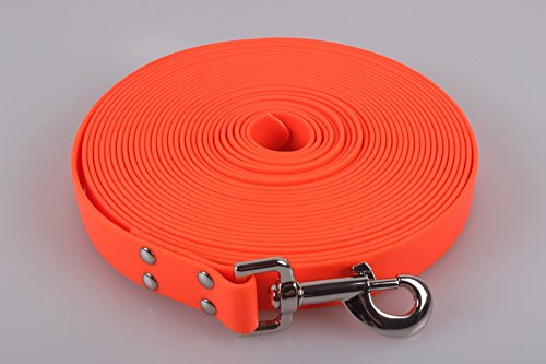 Alternatively, a fabric long-line, order the shorter length. The line won’t be trailing on the floor to absorb water or to get caught, and you will be able to communicate and stay in touch with your dog better on a fabric long-line instead of a dense biothane line.