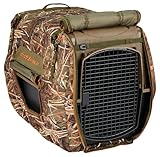 The ArcticShield Insulated Kennel Cover*(paid link) comes in three sizes of medium, large, and extra-large. And it comes in two colors of camouflage and a forest green color pattern.