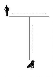 1. Sit your dog at the foot of the T and walk up to the cross bar.
