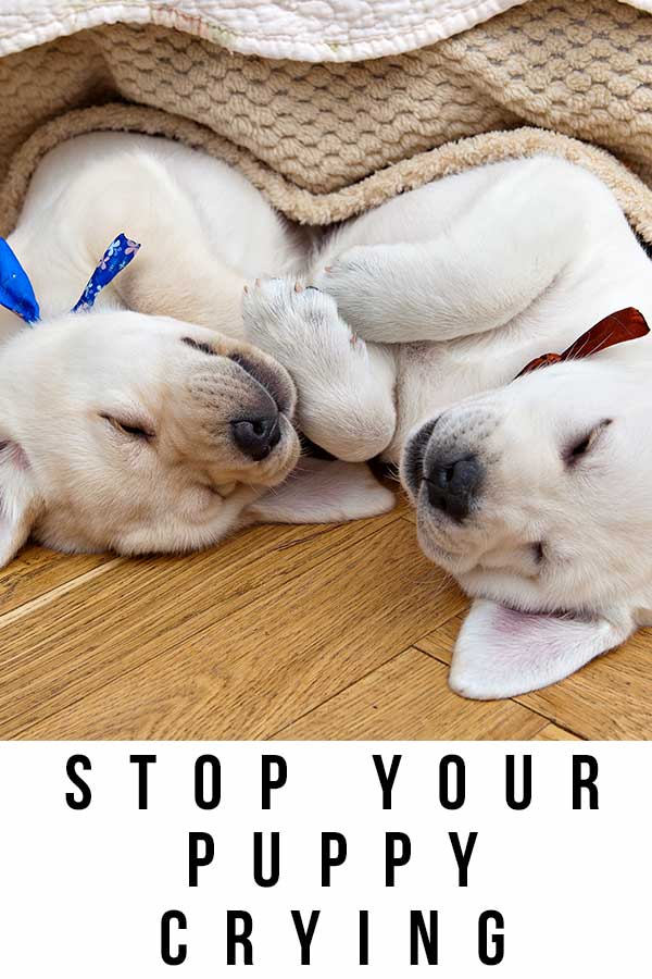 You can stop a puppy crying at night by bringing them next to your bed in a box or crate. The puppy can smell and hear you and if they stir or get upset to begin with, you can reassure them with your hand.
