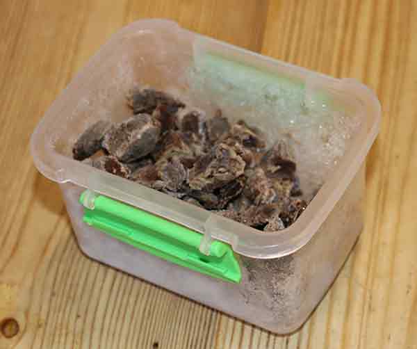 Occasionally a wobbly tooth slows her down, but apart from that she manages bones and fur with no problems. Check out my raw feeding page for more information